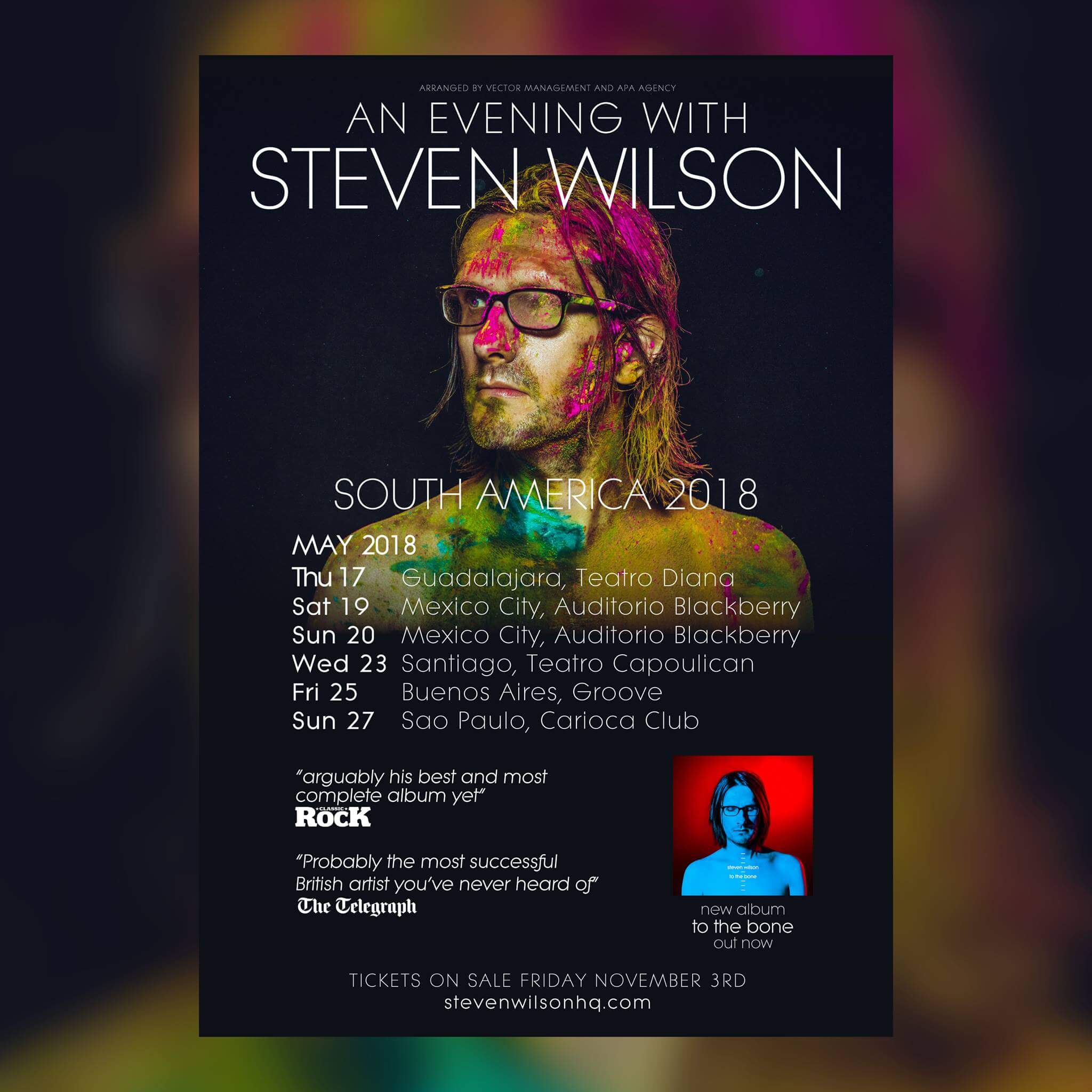 I’m happy to announce a return to South America in May of next year with my band, and a new show based on the current album, To The Bone. As well as featuring songs from that album, there will be favourites from previous tours, as well as some of my older songs that haven’t been played by the solo band before. The visual aspects of the show are planned to be on an even higher level than previous tours, and as always the sound will be in quadrophonic. Tickets go on sale here this Friday (3rd November), don’t miss out!