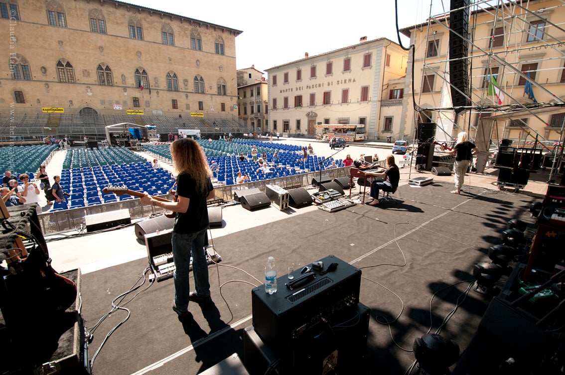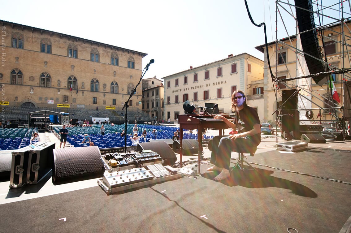 Here are some more photos from Steven Wilson’s summer festival run, this time from the magical show that took place in the beautiful town square of Pistoia, Italy on 5th July. Photos by Claudia Hahn.
