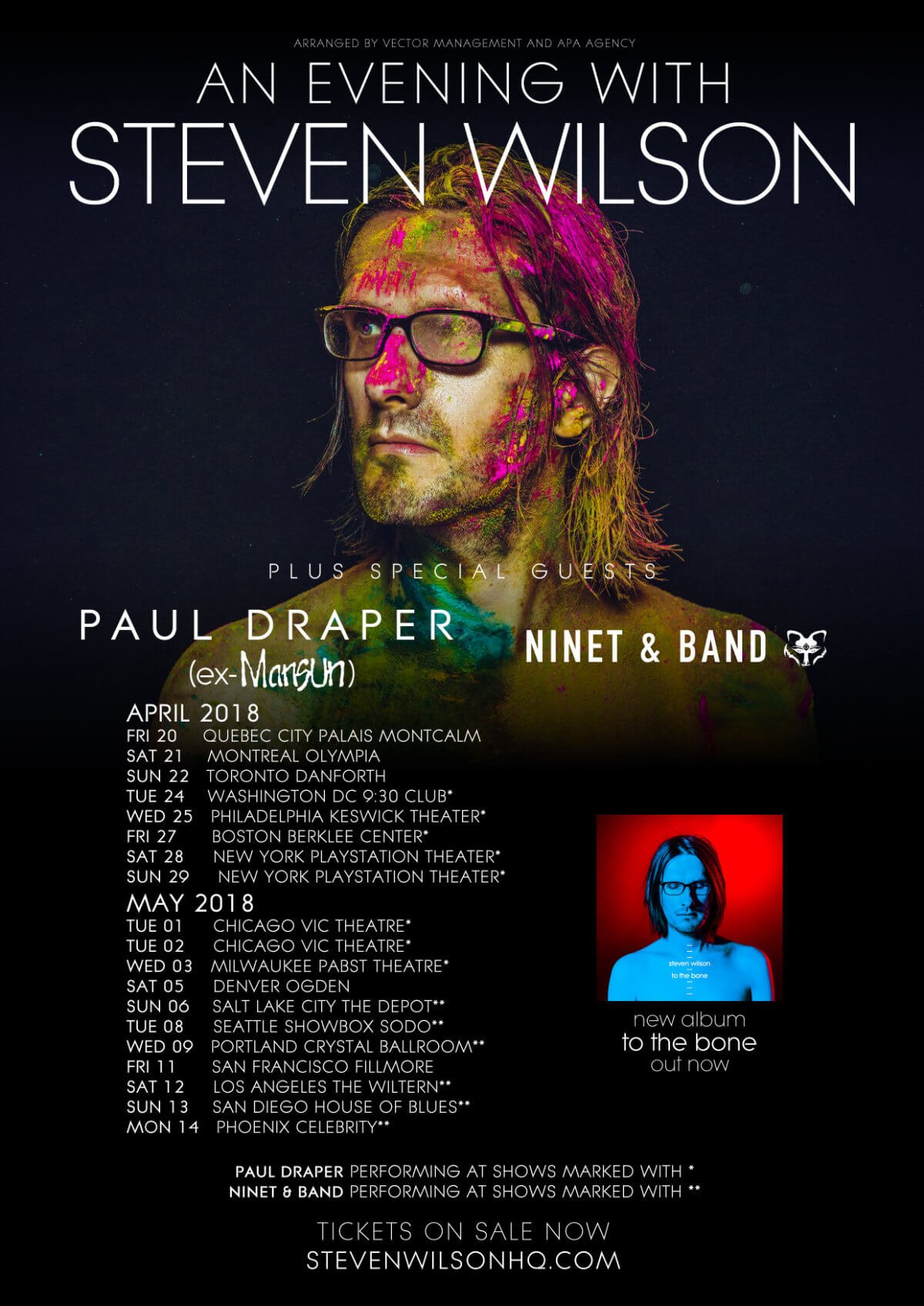I’m very pleased to announce that Paul Draper (ex-Mansun) and Ninet will be playing opening sets at select dates on my forthcoming USA tour. Paul will perform a solo set at the east coast shows, and Ninet and her band will cover most of the west coast dates. Tickets are on sale now!