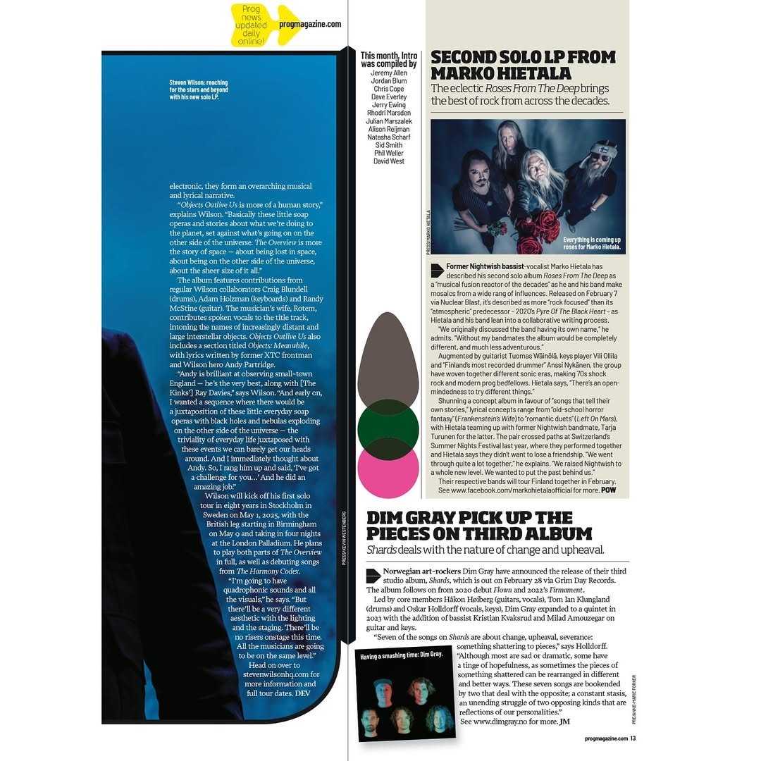 My eighth studio album ‘The Overview’ will be released on 14th March 2025. Prog magazine have an exclusive interview in their latest issue, on sale 31st December.
